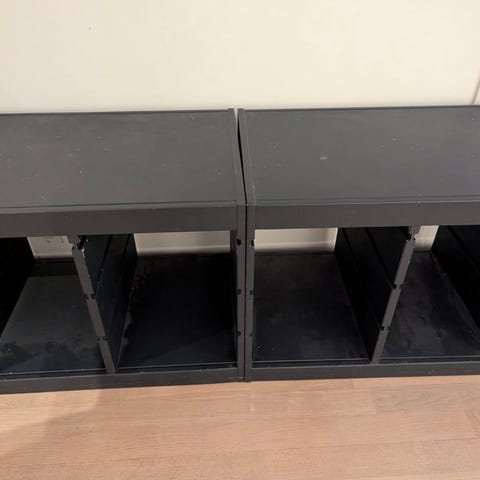 4 IKEA oppbevaringsboks i svart. Boksen har lokk som festes med trykknapper og passer til oppbevaring av leker, klær eller annet utstyr. Den er laget i lett materiale og kan plasseres på gulvet, eller under seng.