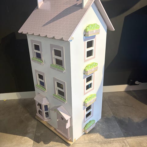 Jentene selger dukkehuset deres fra LeToy van. Pent brukt dukkehus med interiør. Dukker, og leker på bildet følger med.