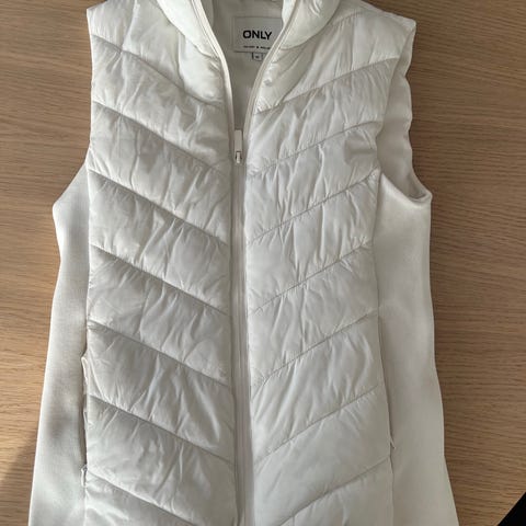 ONLY vest for dame i størrelse XS. Lang, vattert modell i beige farge med hette. . Glidelåslukking foran. Egnet som ytterplagg i overgangssesonger eller lag-på-lag på kjøligere dager.