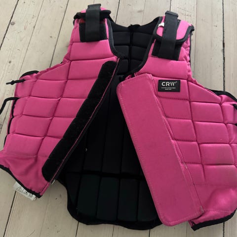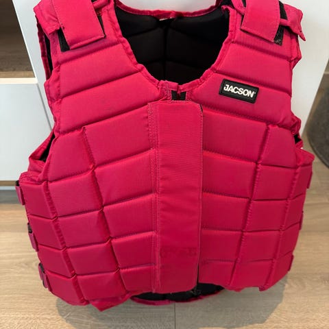 Jacson ridevest for barn i størrelse 12 år / XL. Vest i rosa farge med polstrede paneler for støtdemping. Lukkes med glidelås foran og har justerbare stropper i sidene for tilpasning rundt overkroppen. Egnet som sikkerhetsvest ved ridning for barn i aktuell størrelsesgruppe.