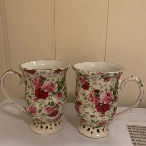 Kanne porselen hvit med rosa blomsterdekor