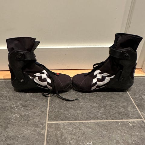 Alpina kombistøvel. Støvlene har høy ankelstøtte med borrelåsreim øverst og glidelås foran.
