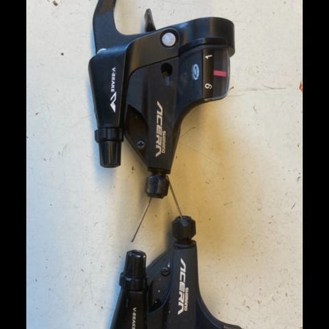 Shimano Acera girspaker sett for sykkel. Består av to girspaker med integrert girindikator for henholdsvis 3 og 9 gir. Farge svart. Monteres på styret med klemme rundt styret. Egnet for sykler med Shimano Acera girsystem og tilsvarende kompatible komponenter.