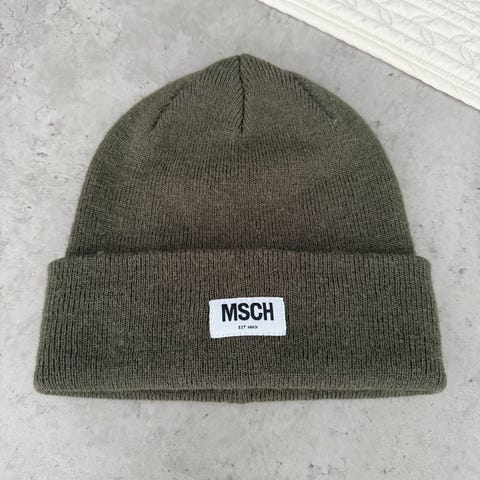 Modellen er ribbestrikket med oppbrett og har MSCH Copenhagen-logo foran. Luen er merket one size og passer til dame.