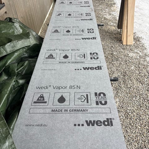 Wedi våtromsplate S-Foam består av en blå kjerne av ekstrudert polystyren (XPS).