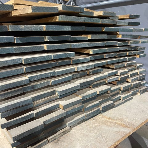 Platene er nye, men har litt forskjellige skader på kortsider/langsider (klemskader fra truckkjøring)