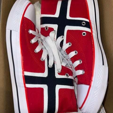 Russ canvas sko 🇳🇴 Strl 41. Kun prøvd på. Perfekt både dersom du er russ eller bare litt vel glad i landet ditt