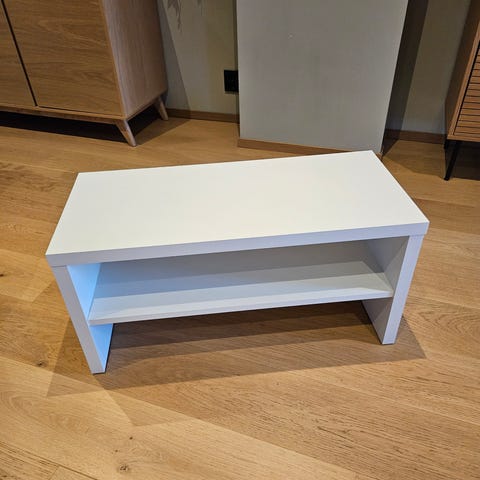 Pent brukt hvit tv benk selges, benken har en skuff og hylle.