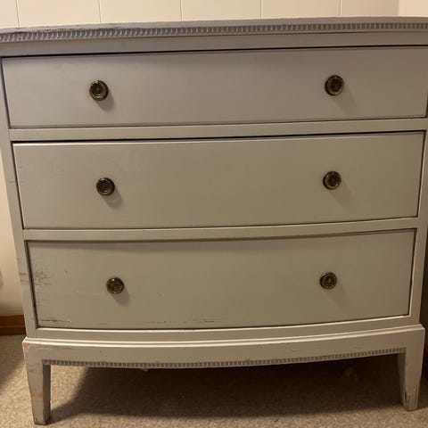 Kjøpmannsdisk/ kommode, selges for 250kr, opprinelig i furu men ble malt i egghvit/lysbeige en gang i tiden, trenger nok ett strøk til for å være perfekt da finnes bruksmerker og slitasje. Selges pga flytting og må hentes på Bøn.