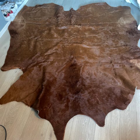 2 brune skinn av geit. Det ene er litt slitt, se bilde, dette skinnet er også litt mindre. Selges helst samlet.