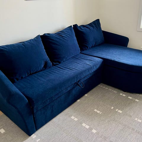 Sovesofa, ikke brukt. Den er litt støvete på bildet, stått på gjesterom de siste årene. Vil bli vasket før salg. Veldig praktisk og god sofa Målene er 200x55 eller utslått som seng 200x110.