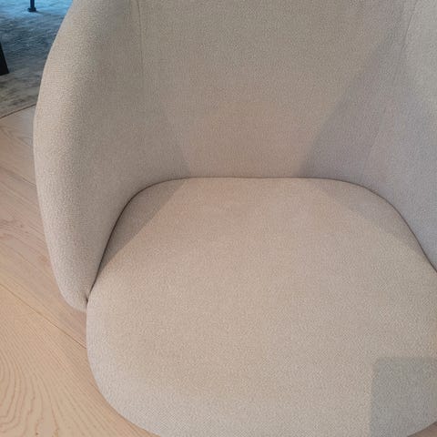 Stol med hvitt teddystoff og eikefargede bein, fra Søstrene grene. Følg linken for ytterligere informasjon.