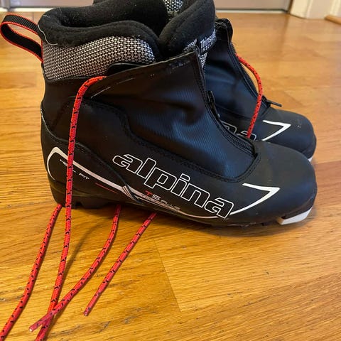 Alpina langrennsstøvler med NNN-såle. Støvlene er svarte med røde lisser og lyse detaljer. De har snøring med glidelåslukking over vristen for å beskytte lissene mot snø og fukt. Overdelen er polstret for bedre komfort og varme rundt ankelen. Passer til langrennsski med NNN-binding.