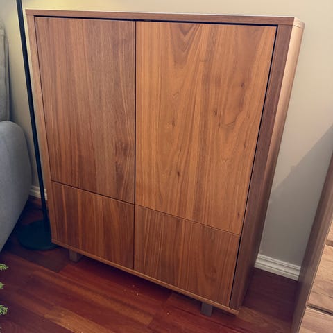 Selger vår flotte kommode pga flytting. Kommoden har en nydelig trefinish og en flott svart glasstopp. Kommoden ble med hjem i bagasjen etter et jobbopphold i Singapore 🌱❤️. Kommodens mål = L 58 x B 42 x H 110cm.