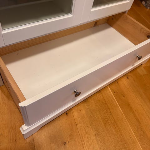 Fin blå sjenk gis bort mot henting. Døra i midten he ein litt treig lås, men går fint å åpne.