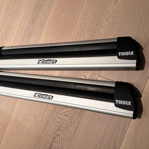 Selger komplett og originalt Thule 753 takstativ med uttrekkbar skiholder (Xtender). Takstativet er lite brukt, velholdt og pent behandlet - alt fungerer som det skal.