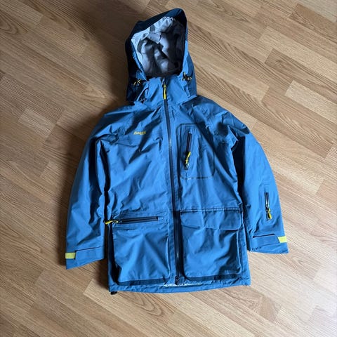 Lite brukt jakke fra Bergans. Bergans Kleivi Youth Jacket. Str. 152. Fritidsjakke i vindavvisende softshell. Blå med gule detaljer. Formsydd albueparti, forlenget ryggparti og refleksdetaljer.