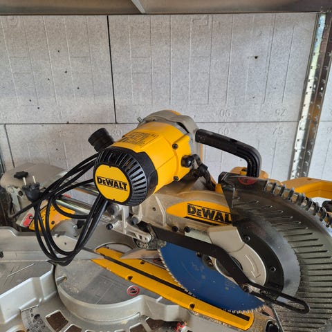 Dewalt DWS780 kapp- og gjærsag med 305 mm sagblad og 1675 W motor. Sagen drives på 230 V og har turtallsområde fra 1900 til 3800 o/min. Kapasitet for kuttedybde er opptil 112 mm. Egnet for presise tverr- og gjæringskutt i tre og lignende materialer. Det følger med stativ som gir støtte for lengre emner under arbeid.