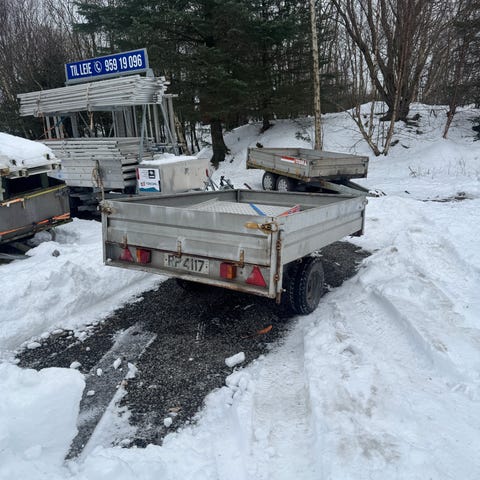 Brenderup tilhenger for BIL/ATV. Enakslet henger med trekasse og lave karmer. Tilhengerfestet er tilpasset BIL/ATV eller lignende kjøretøy. Egner seg til transport av mindre lass som ved, jord, utstyr eller annet gods på gårdsplass, hyttevei eller lignende områder. Utstyrt med refleks og baklys. Kasse og plan har synlig slitasje og overflaterust, men konstruksjonen fremstår som funksjonell på bildene. Registrert på meg og er en 425kg tilhenger med justerbart drag, lys må gåes over.