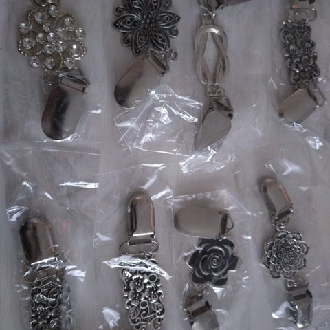 Hver klype har metallklips i begge ender og er egnet til å holde sammen klær, for eksempel cardigans, sjal eller jakker.