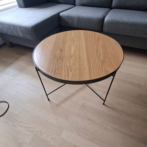 Den andre halvparten av settbordet måler 70 cm og har ødelagte skruehull for et av fire bein.