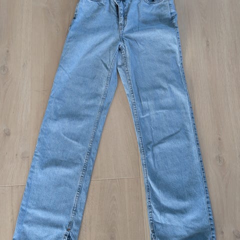 Weekday jeans "Arrow" for dame i størrelse XS med livvidde W24 L32. Buksen er i blå denim laget av bomull. Klassisk femlommers modell med glidelås og knapp i front. Passer til hverdagsbruk og kan kombineres med ulike topper og sko for en enkel og praktisk stil.