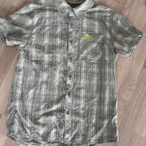 Bergans skjorte for herre i størrelse L. Skjorten er rød med rutemønster og er laget i bomull. Klassisk modell med krage og gjennomgående knappestolpe foran. Ermene har mansjetter med knapper, og det er forsterkede albuepartier i samme rutete stoff. Egner seg til hverdagsbruk og fritid i kjølige og milde temperaturer.