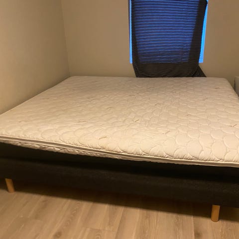 Kjøpt på Jysk. Hel og pent brukt seng. Litt nupper og noen flekker på overmadrassen - den vil være nyvasket ved overlevering.