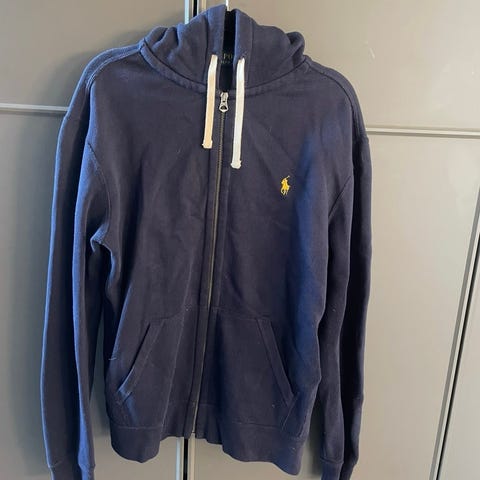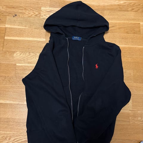 Ralph Lauren hettegenser for herre i størrelse M. Genseren er svart og laget i bomull. Modellen har glidelås i front, hette med snøring og to frontlommer. Klassisk Polo-logo er brodert på brystet. Passer til hverdagsbruk og som et lag over t-skjorte eller skjorte.