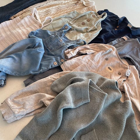 Nydelig sett med strikkegenser, hvit body og finbukse