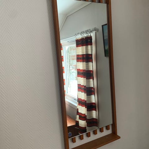 Retro speil med teakramme. Høyde 97 cm. Bredde 40,5.