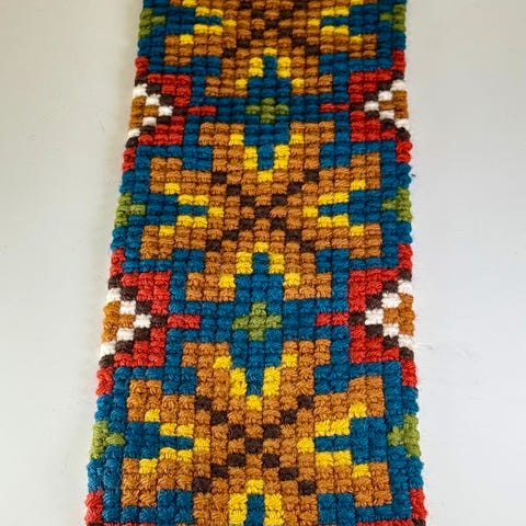 Vintage vevd løper / klokkestreng med fargerikt mønster.