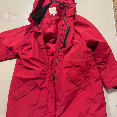 • Kåpe med fastsydd hette og fluffy dunfølelse.