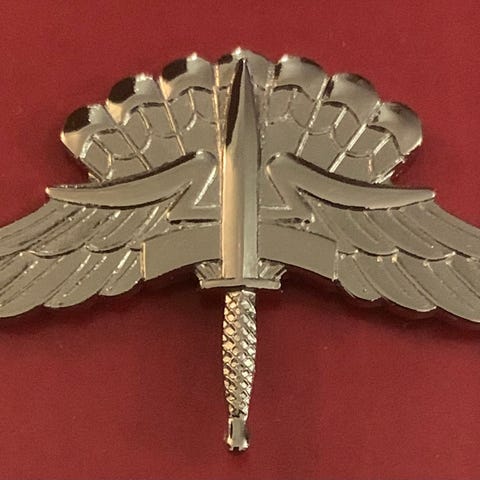 Fallskjermvinge. Sølv. M 83. Hoppevinge HFJS Hærens Fallskjermjegerskole.