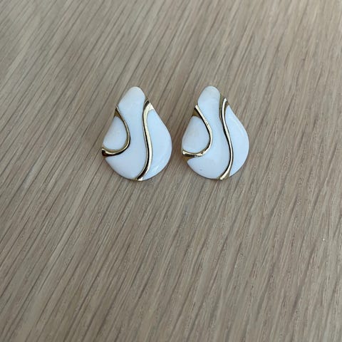Elegante øredobber med myk, organisk form og gullfarget ramme. Tidløst og sofistikert design som sitter pent på øret og passer både til hverdagsbruk og mer pyntede anledninger.