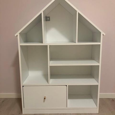 Oppbevare bamser (i skuffen) , bøker/spill og småleker. En del bruksmerker, men fungerer fint fordet. Ca mål høyde-135, bredde-82, dybde 30. #barnerom #oppbevaring #skap #kommode