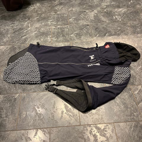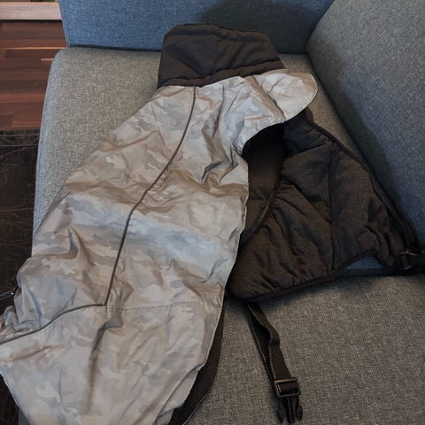 Dekkenet er brukt en sesong og selges fordi hunden dessverre har gått bort. Vår Cane Corso elsket dette dekkenet på kalde dager. Ingen synlig slitasje, men det er spor av overflateskitt etter bruk (kan lett vaskes bort).
