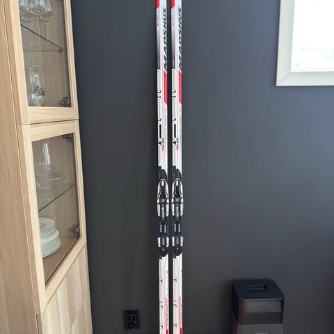 Rossignol R-Skin Classic CL198 felleski i lengde 198 cm. Den ene plata hvor man fester bindingen er ødelagt og må byttes. Det har vært montert Rottefella move-binding på disse tidligere