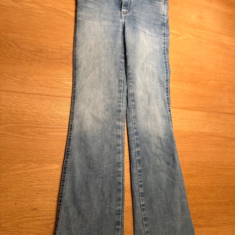 Lois Raval jeans for dame i størrelse M med livvidde W30 L30 Buksen er laget i blå denim og har utsvingte ben (flare). Klassisk 5-lommersmodell med beltehemper og lukking med knapp og glidelås. Passer til hverdagsbruk og kan kombineres med ulike topper og sko for både avslappede og mer oppkledde antrekk. Denna er så og si ny brukt i Max 2 timer men modellen ble feil for lav i livet for meg men er ellers super fin på. Ingen bruks merker . Så bud under 1200 godtas ikke koster egentlig 1795kr ikke en uke siden den ble kjøpt