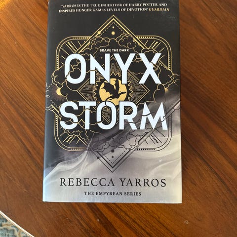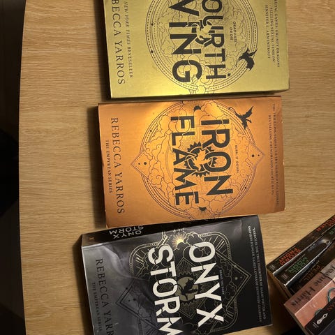 Rebecca Yarros Empyrean-serien boksett med tre bøker: "Fourth Wing", "Iron Flame" og "Onyx Storm". Bøkene er på engelsk og tilhører fantasy-serien Empyrean. Pocket utgave.