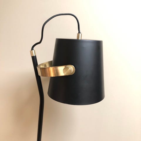 Gulvlampe av metall i moderne design med integrert LED-lyskilde. Høyde 125 cm, hvorav 60 cm LED-lysspreder av silikon. Plastledning med fotbryter.