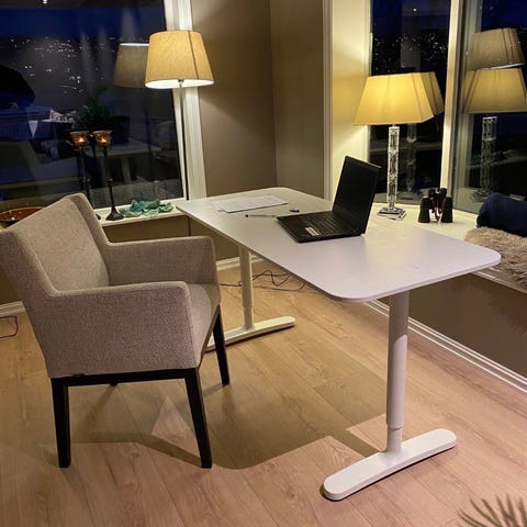 Bordet har justerbar høyde og passer derfor godt både til hjemmekontor og arbeidsplass.