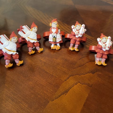 &Tradition påskefigurer kyllinger dekorasjon. Sett med små figurer formet som gule kyllinger på akebrett, med skjerf og briller i ulike varianter. Passer som bordpynt eller dekorasjon på hylle og vinduskarm i påsken. Figurene står på hvit base som forestiller snø, og har detaljer i rødt, grønt og brunt. Egnet som innendørs påskepynt.100,-kr pr stk , 400,-kr for alle.Målene på kyllingen er;10 cm lang. 5 cm bred og 10 cm høy, ca mål.