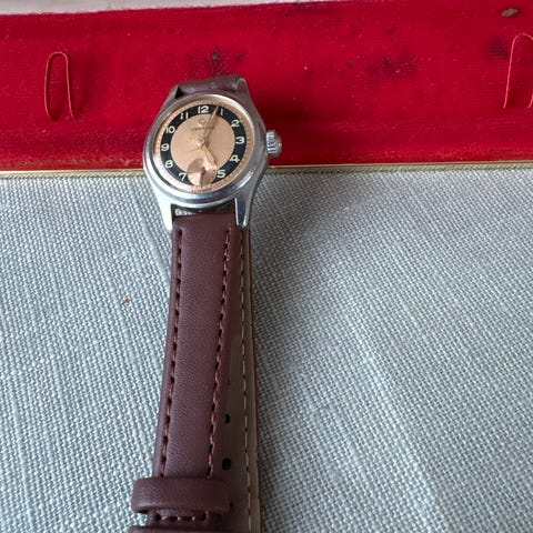 Pen gammel opptrekkbar Certina dameklokke. Plaque 20. Elastisk klokkereim. 22mm bredde. Virker som den skal.