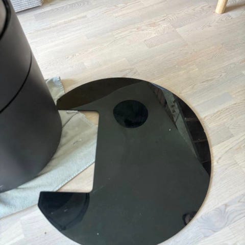 Glassplater til peisovn i buet form. Platene er laget i herdet glass og er tilpasset plassering foran eller under peisovn for å beskytte gulvet mot glør og aske. Formen er halvsirkel/buet med utsparing til ovn. Egner seg til bruk på harde gulv som parkett eller fliser der det er behov for brannbeskyttende underlag foran peis eller ovn.