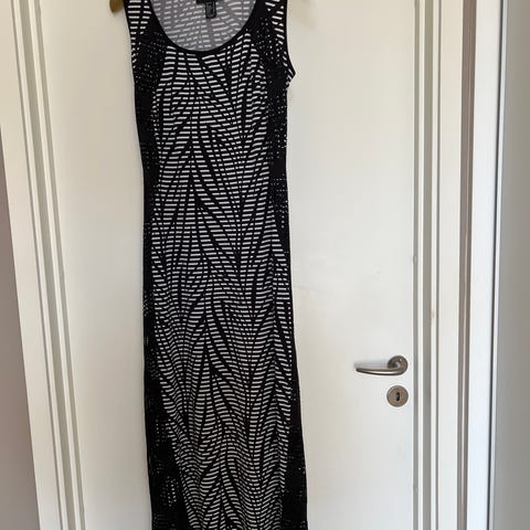 Vakker, elegant, lilla kjole av tungtfallende, fløyelsmykt stoff med masse glitrende, små stjerner over det hele. Den har spaghettistropper, er utsvingt nederst, størrelse 38 og merke: Lifetime. Består av polyester og elastan, vaskes for hånd. Kjolen er pent brukt uten synlige merker, men stroppene er sydd litt kortere enn opprinnelig (til en liten person). Dette ser ut til å kunne tas opp. Det drysser litt glitter av den, antakelig fordi jeg vasket den i maskin på 30°. Jeg måtte vaske den med eddik, fordi den luktet litt røyk, og det kan være hint av lukt fremdeles. Men nå synes jeg den lukter mest litt parfyme.