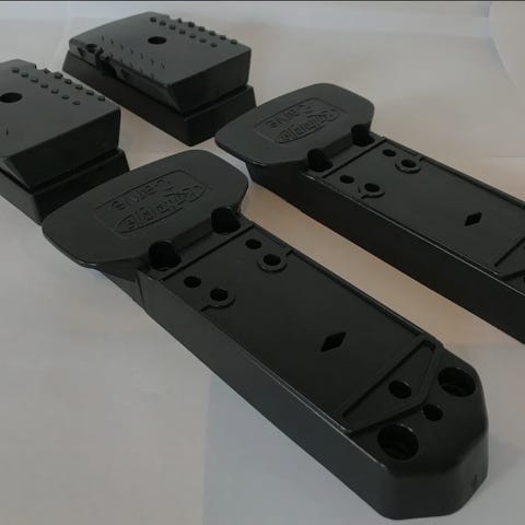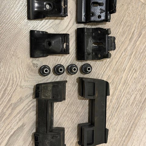 Sett med 4 stk fot/feste for alle typer Thule lastestativ - både for firkantrør i stål og aliminiumsmodellene - for å feste på åpne rails.