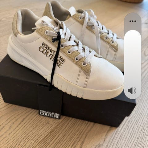 Selger Versace Jeans Couture sko. Aldri brukt, men har en skjønnhetsfeil på ene lissa (se bilde). Kjøpt i London til outlet pris, langt under halv pris (59,99 euro)😊