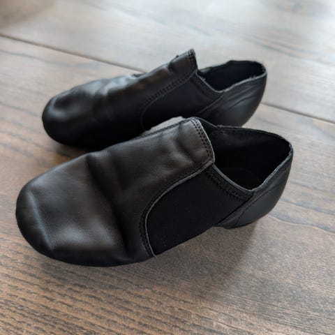 Silp-on Bloch jazzsko til barn str 6 (36/36,5). Laget i skinn og har 2-delt gummisåle. Det midtre feltet rundt og under skoen er av elastisk strikk. Dette gjør at skoen sitter ekstra godt på foten. Egnet til bruk i dans, jazzdans eller lignende aktiviteter der det trengs myke og fleksible sko.