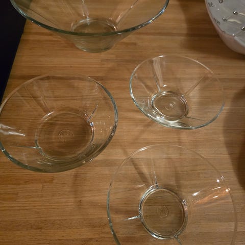 5 fine Hadeland glass. Tror det er til gele/syltetøy 2 er merket med Hadeland.